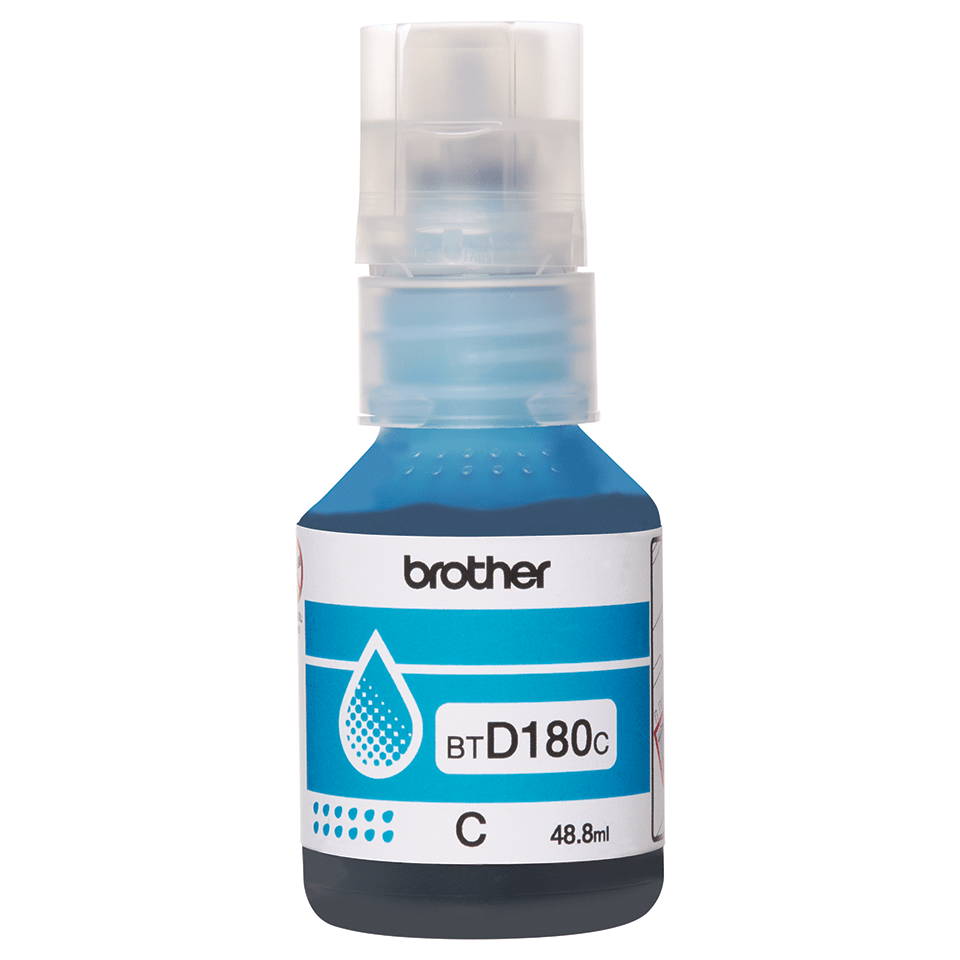By choosing this genuine Brother BTD180C cyan super high yield ink bottle. Prints up to 5,000 pages. (approx. cartridge yield is declared in accordance with ISO/IEC 24711).